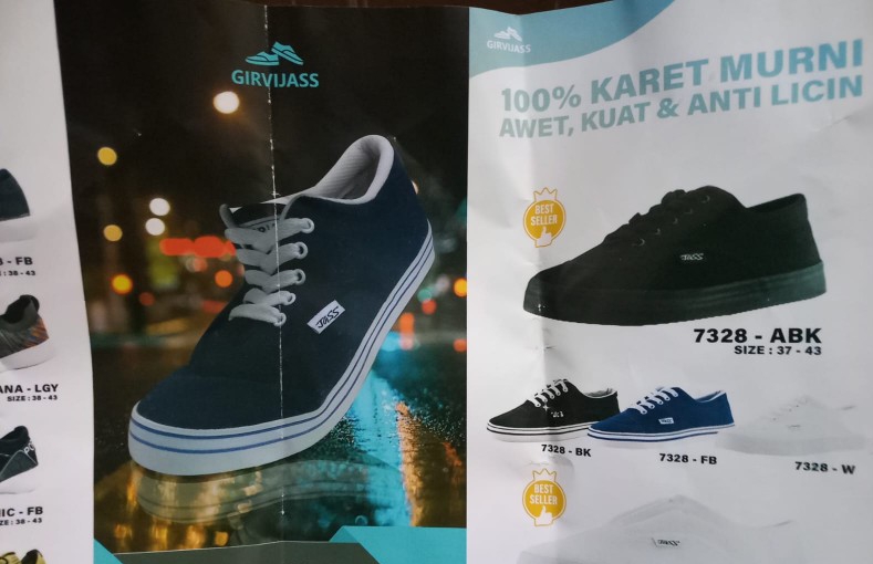 “Permukaan dan alas sepatunya menyatu jadi untuk ketahanan, dijamin kuat dan tahan lama.” Ujar Jordy.
