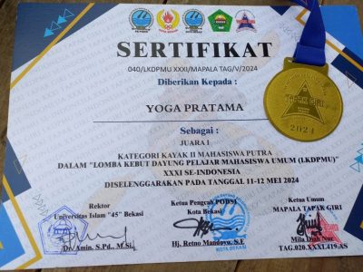 Dua mahasiswa UKM Mapala Adikara Sakti Universitas Panca Sakti berhasil menggondol medali emas dalam ajang olah raga Kebut Dayung tingkat nasional yang digelar oleh Mapala Tapak Giri Universitas Islam 45 (UNISMA) Bekasi.