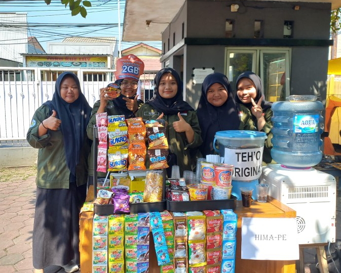 Mengenakan jas almamaternya wanita-wanita Prodi Pendidikan Ekonomi ini kompak mengucapkan selamat datang dan selamat mencicipi menu minuman kepada setiap mahasiswa yang memesan minuman.