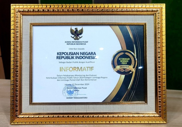 Polri meraih peringkat Tertinggi Ke-2 (dua) kualifikasi Informatif kategori Lembaga Negara dan Lembaga Pemerintah Non Kementerian dalam Penghargaan Keterbukaan Informasi Publik (KIP) 2024. Dalam kategori tersebut, hanya ada tiga Lembaga Negara dan Lembaga Pemerintah Non Kementerian yang mendapatkan penghargaan.