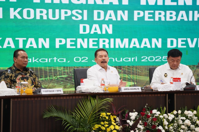 Kejaksaan Agung selaku Ketua Desk menyelenggarakan Rapat Tingkat Menteri terkait Desk Koordinasi Pencegahan Korupsi dan Perbaikan Tata Kelola serta Desk Koordinasi Peningkatan Penerimaan Devisa Negara di Gedung Utama Kejaksaan Agung, Jakarta.