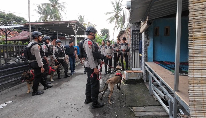 Enam personel Polsatwa beserta 3 ekor anjing pelacak khusus (Caksus) narkoba atau K-9 diturunkan untuk melakukan pencarian barang bukti barang haram perusak anak bangsa di kampung tersebut.