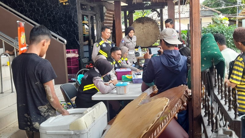 Selain trauma healing, SiDokkes juga memberikan pelayanan cek kesehatan gratis kepada warga asrama Polres Metro Bekasi Kota dan warga lingkungan sekitar yang terdampak banjir.