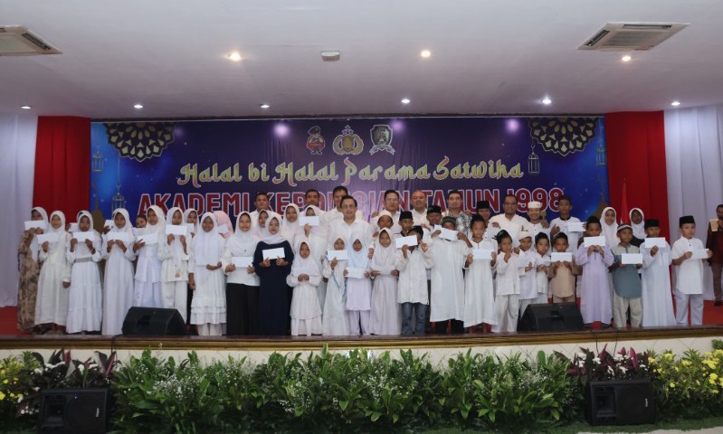 Acara reuni ini juga diisi dengan tausiyah Ustad Maulana dan santunan anak yatim, selain itu ada tayangan dokumentasi pengabdian anggota Akpol 98 di berbagai daerah, pemberian penghargaan kepada alumni berprestasi, serta doa bersama untuk rekan-rekan sejawat yang telah gugur dalam tugas, pungkasnya.
