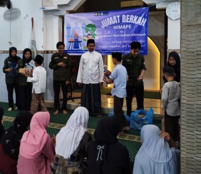 Diketahui dalam kegiatan Jumat berkah tersebut HIMAPE juga memberikan 20 paket Alat Tulis Kantor (ATK) dan 20 nasi box. Ketua Umum HIMAPE mengatakan bantuan ini diharapkan dapat membantu kebutuhan belajar anak-anak yatim piatu di yayasan dan menjadi bentuk cinta serta kepedulian dari sesama.