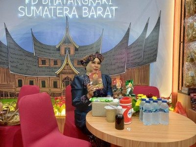 Dibawah komando Ny. Sari Gatot Tri Suryanta pengurus dan anggota Bhayangkari Sumbar memperkenalkan bermacam-macam kuliner khas Sumbar pada pameran Kreasi Bhayangkari Nusantara.