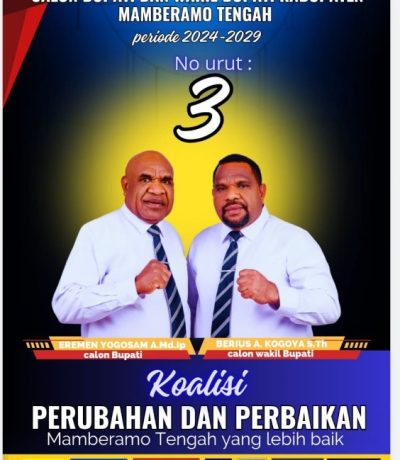 Sorotjakarta,- Pasangan calon Bupati Eremen Yogosam – Berius Kogoya yang disingkat ERBE akhirnya memperoleh...